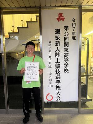 令和7年10月18日に、「令和7年度第29回関東高等学校選抜新人陸上競技選手権大会」が行われ、男子棒高跳で2年「鈴木啓太郎」が第6位に入賞しました。