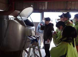 農薬を使わない有機農業をされています。こまつ農縁で育てたお米で作ったお菓子をネットやお店で販売を行っています。また、SNSを使ってこまつ農縁の活動を発信しています。今回の見学を通して、農業は育てる上での大切な知識や周りの農家さんとのコミュニケーションが大切だと言うことがわかりました。