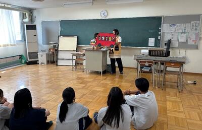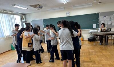 春日保育園で働く保育士2名を講師としてお招きして、保育現場で行われる子どもの表現活動について体験的に学ぶ授業を行いました。生徒が疑問に思っていることを質問したり、実際にリトミックを体験したりと有意義な時間を過ごすことができました。生徒からは「未満児と関わるときに、無理に話しかけるのではなく、他のコミュニケーション方法で関わればいいことがわかった」「自分の知らない手遊びを知ることができて、幅が広がった」といった感想があがりました。今回教えていただいたことを参考に、11月のボランティア活動や、保育園での実習、今後の進路に活かしていきたいと思います。