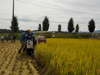 生物資源系列水田班が東横野小学校との交流会(稲刈り・試食会・報告会)を実施しました