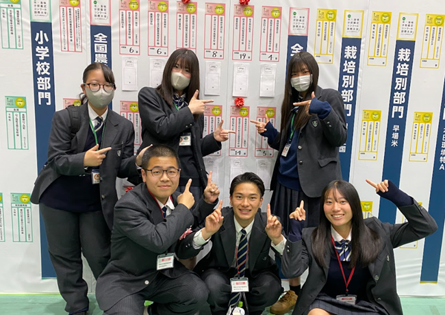 昨年度、本校は初めてお米甲子園にノミネートされ、特別優秀賞をいただきました。その実績を超え、2年連続最終ノミネートを目指し努力を重ねてきた3年生とともに、今年も全国大会の舞台に立つことができました。応援してくださった皆様、ありがとうございました。