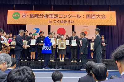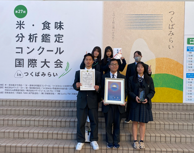 12月7日、茨城県つくばみらい市で開催された第27回米・食味分析コンクール国際大会の全国農業高校お米甲子園部門で、本校水田班の「縁結び」が出品数150を超える激戦の中で、見事、金賞を受賞いたしました。(1位:最高金賞、2~6位:金賞、7~15位:特別優秀賞)